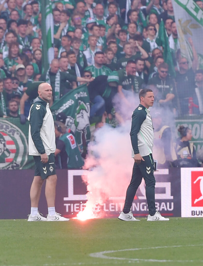 Weit nach Schlusspfiff kam es im Weserstadion nicht nur auf dem Spielfeld – eine Rudelbildung mündete in zwei Roten Karten – zu unschönen Szenen. So wurde aus dem nicht mehr allzu prall gefüllten Gästeblock kleine Leuchtfeuer in die anliegenden Bereiche und eine Leuchtrakete in Richtung Bremer Fankurve geschossen, wo die Spieler noch den 3:1-Triumph bejubelten. Darüber hinaus wurde eine Toilette in Brand gesetzt. „Da braucht man keine Wortklaubereien zu bemühen, sondern da wurde eine Grenze überschritten. Das ist ein absolutes No-Go“, schimpfte HSV-Vorstand Eric Huwer.